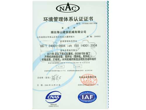 環(huán)境管理體系認(rèn)證證書(shū)