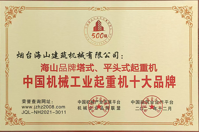 2021年評為起重機十大品牌